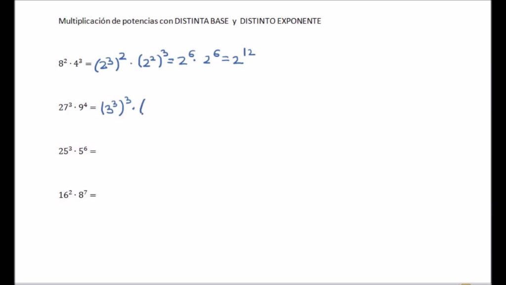 Por ejemplo, si queremos calcular el valor de 2^5 * 3^4, podemos usar el teorema de Pitágoras para transformar ambas potencias a la misma base, y luego aplicar la propiedad de los exponentes. Así, 2^5 * 3^4 = (2 * 3)^(5 + 4) = 6^9.
