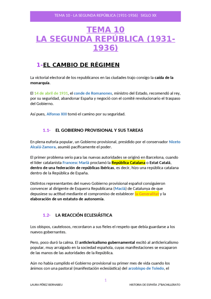 - España en el siglo XX: la Crisis de 1898, la Dictadura de Primo de Rivera, la Segunda República, la Guerra Civil, el Franquismo y la Transición a la democracia.